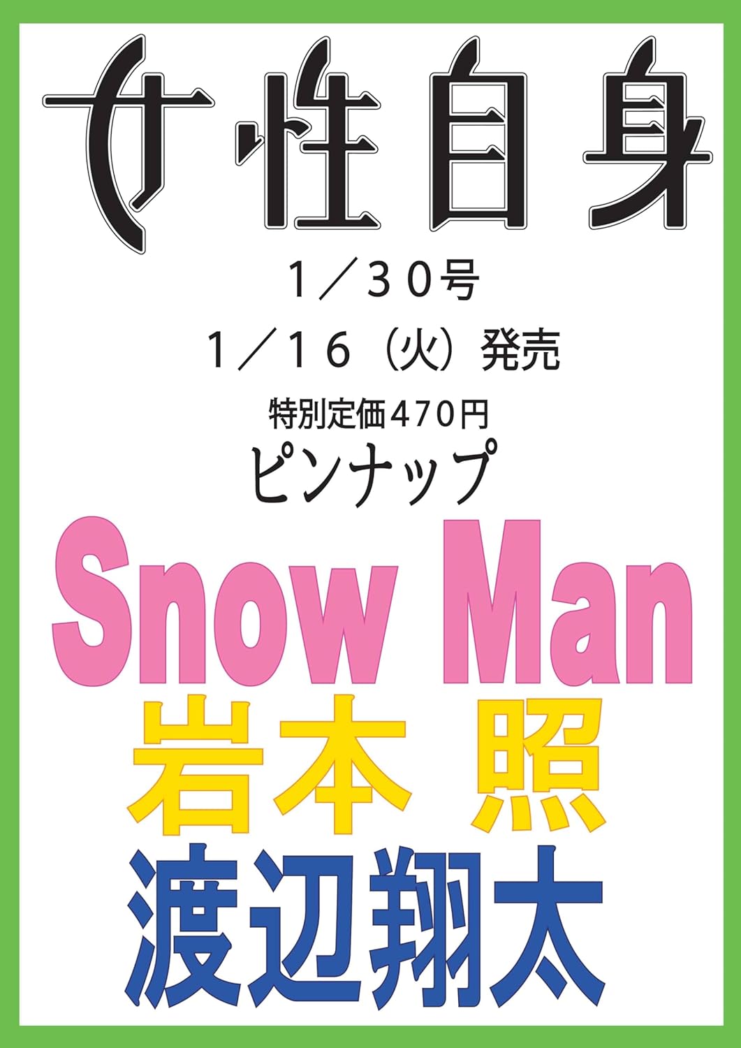 - [NEW表紙]【岩本照・渡辺翔太】「女性自身 2024年1月30日号」(2024/1/16発売)