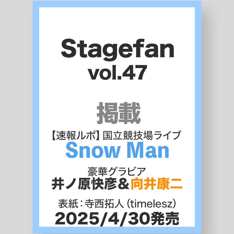 - 19日…Snow Man初スタジアムLIVE「Snow World」公演(4/19・20国立競技場、6/7・8日産スタジアム)(2025)